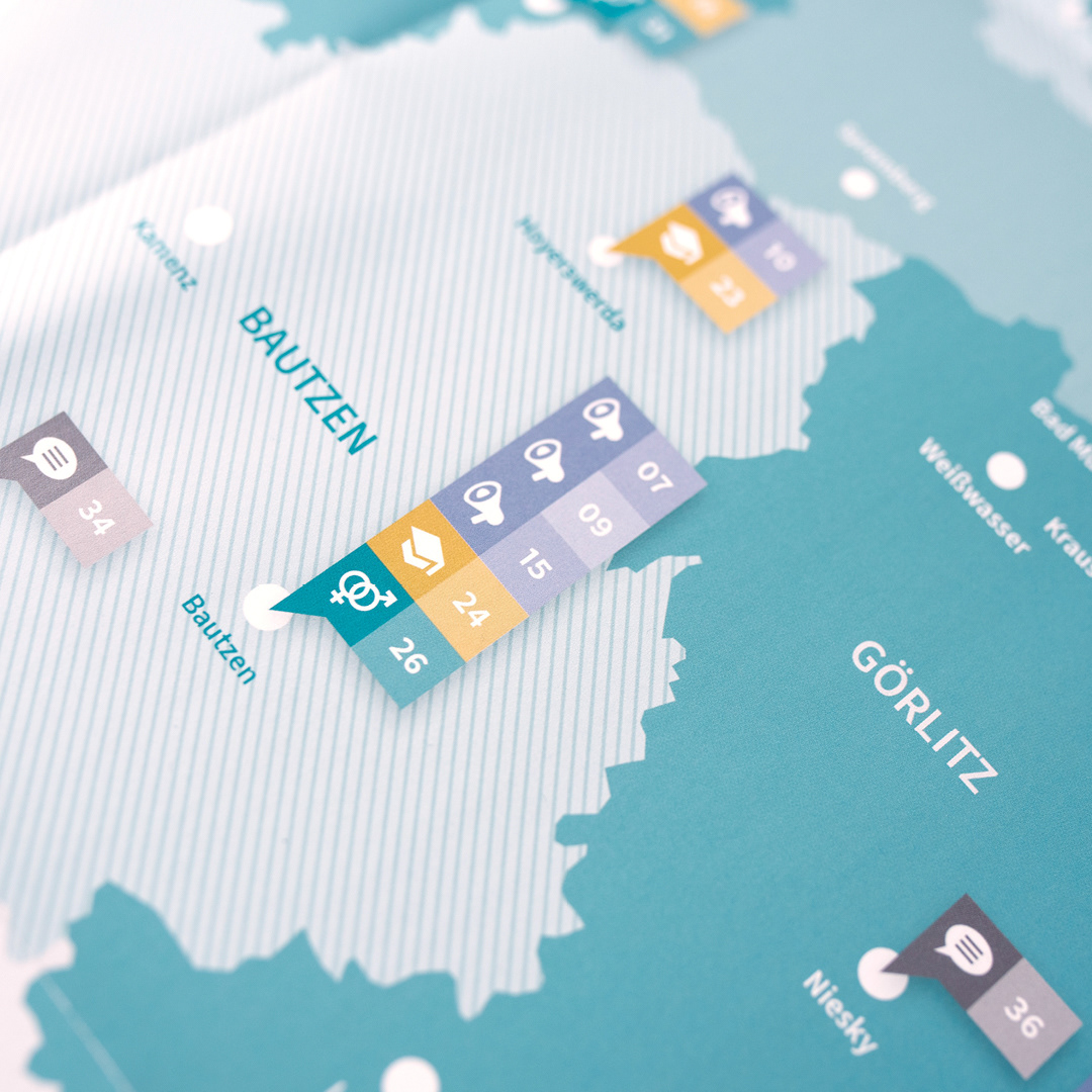 Gestaltung der Karte "Frauen.Leben.hier" unter Berücksichtigung des bestehenden Corporate Designs.
